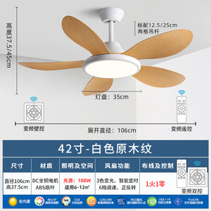 42寸-白色原木纹-吊杆5叶【全光谱】