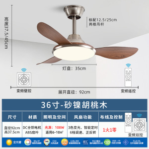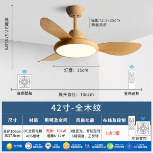 客厅风扇灯家用大风力静音变频餐厅卧室复古电风扇吊灯一体吊扇灯