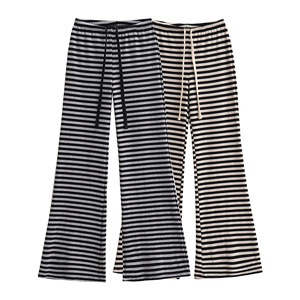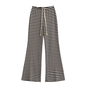 DS25075-25夏季新款 欧美风复古宽松休阔腿条纹抽绳喇叭裤休闲裤