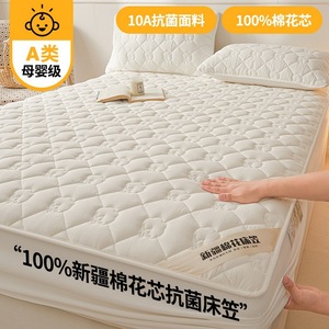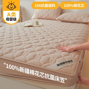 2025新款A类抗菌100%新疆棉花填充夹棉床笠母婴级床笠单件纯色床