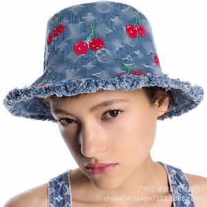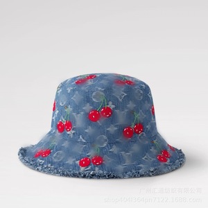高版本L家樱桃棒球帽夏季新款时尚女盆帽牛仔水洗百搭显脸小帽子