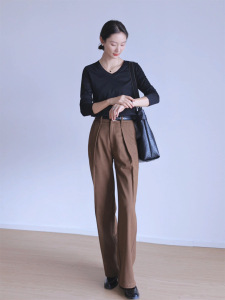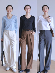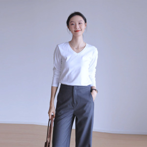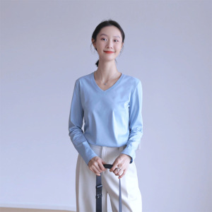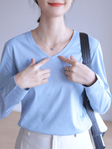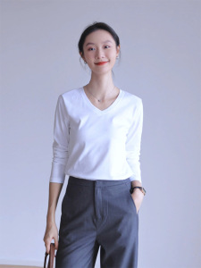 纯棉长袖T恤女修身外穿内搭v字领打底衫上衣春秋