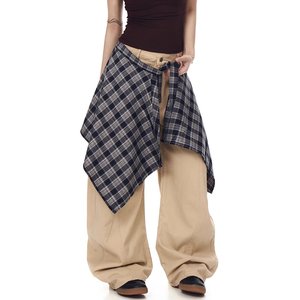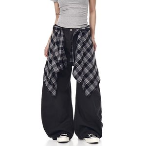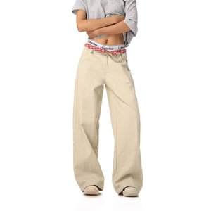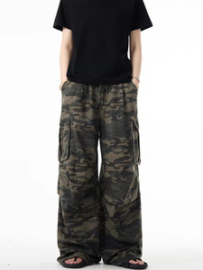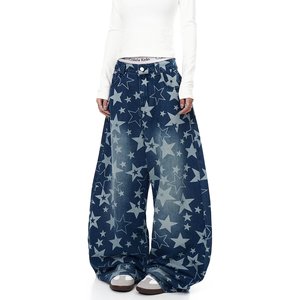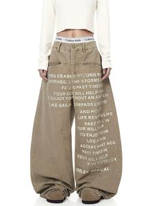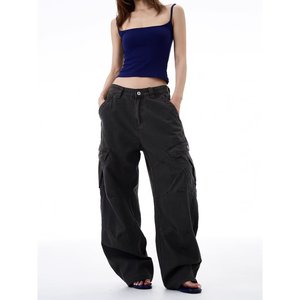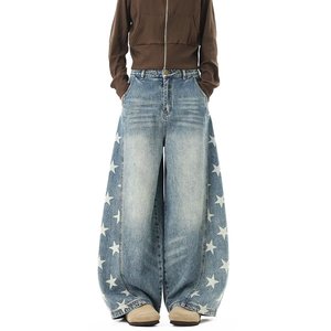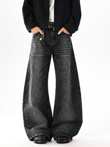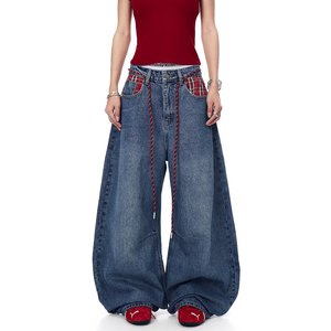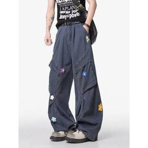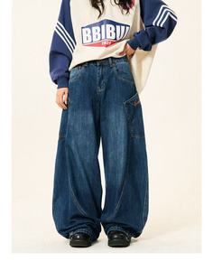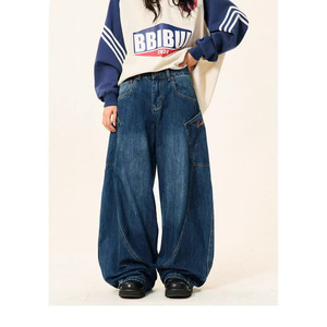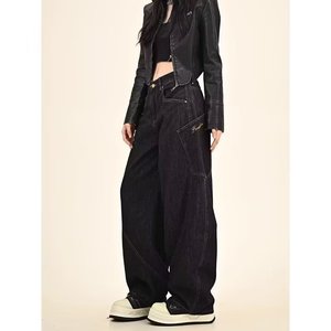 美式复古水洗大口袋弯刀牛仔裤男女直筒阔腿拖地宽松百搭休闲长裤