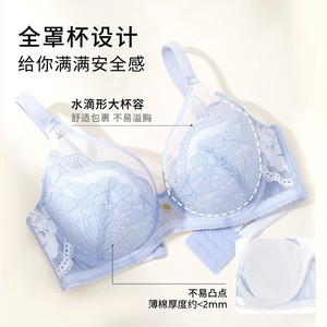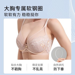 微甜2.0大胸显小胸聚拢内衣女夏薄款无钢圈防下垂收副乳蕾丝文胸