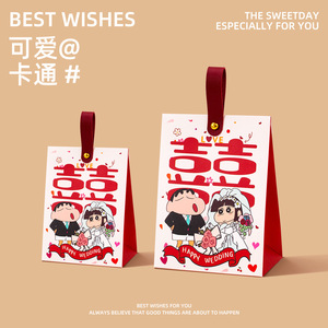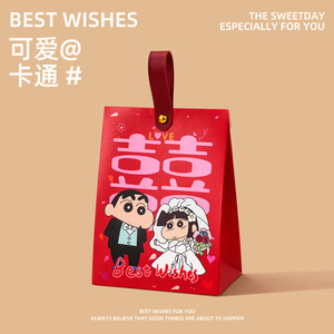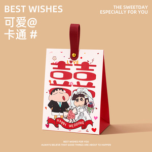卡通小新喜糖盒新款手提糖果盒可爱手绘糖盒订婚用糖果包装盒批发