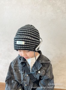 韩系ins儿童条纹针织白标毛线帽亲子款显白气质成人针织套头帽潮