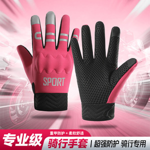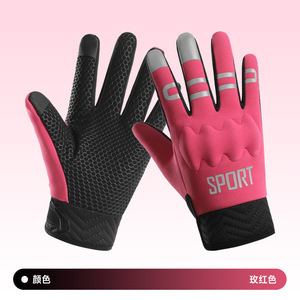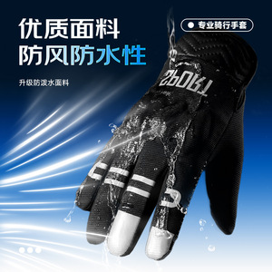 骑行手套触屏硅胶防滑防泼水摇粒绒时尚拉链男女款电瓶车保暖手套