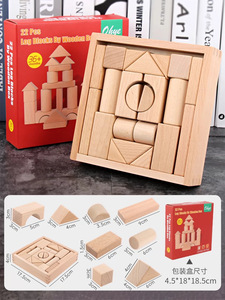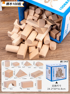无漆实木积木玩具大颗粒原木榉木手工构建桌游幼儿园拼搭