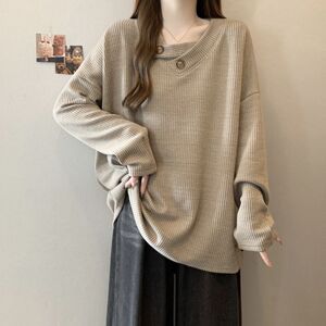 大码螺纹杆坑条V领长袖上衣女2025秋季新款宽松显瘦时尚打底衫女