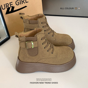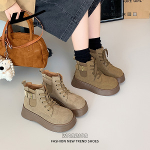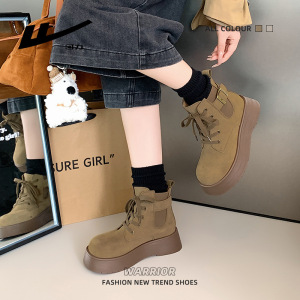 回力厚底复古风短靴纯色英伦风系带秋季女鞋百搭圆头高颜值马丁靴