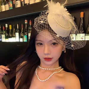 小礼帽女头饰名媛旗袍配饰民国新娘帽面纱晚宴礼服发饰复古网纱帽