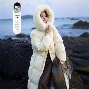 2025网红同款90白鹅绒大毛领韩版羽绒服女加长款加厚连帽冬季外套