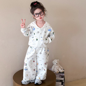 女童满印套装春秋装2025新款儿童装洋气时髦女宝宝运动休闲两件套