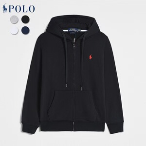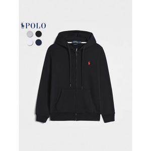 跨境欧美春秋款拉链长袖卫衣男士休闲拉链纯色刺绣小马标拉链开衫
