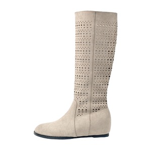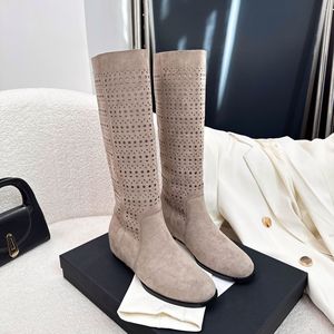 增高5公分美拉德镂空平底长筒靴女2025秋季新款复古不过膝骑士靴