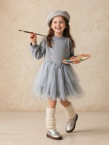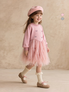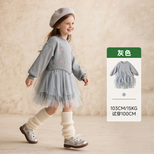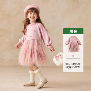 童贝童装2025年秋季新款女童连衣裙可爱网纱拼接甜美A字公主裙