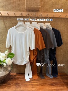 GS.GOOD START-秋季女韩系简约甜美减龄设计感绑带短袖小衫G7075