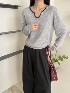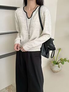 2025秋季新款羊毛点子纱u领毛衣打底长袖薄款高品质上衣韩版女装