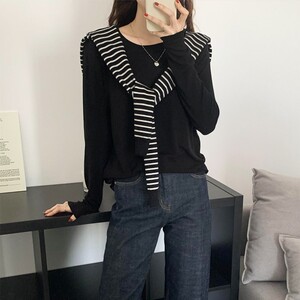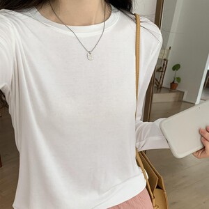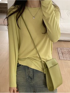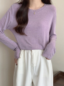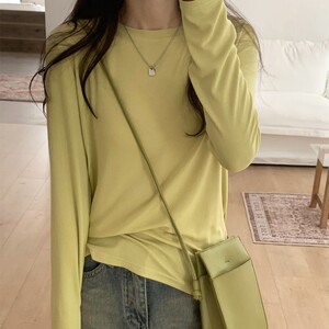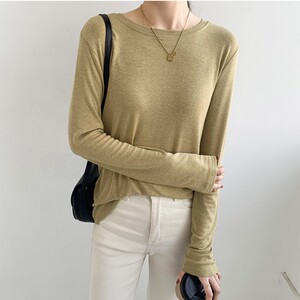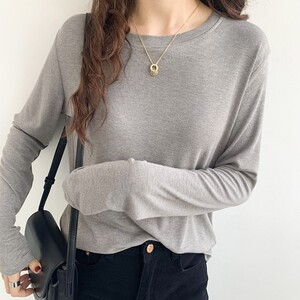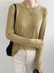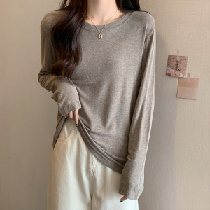 软糯亲肤弹力圆领长袖T恤女内搭2025季秋宽松洋气简约上衣打底衫