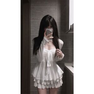 法式纯欲风修身长袖防晒开衫吊带上衣高腰半身裙夏季新款三件套女