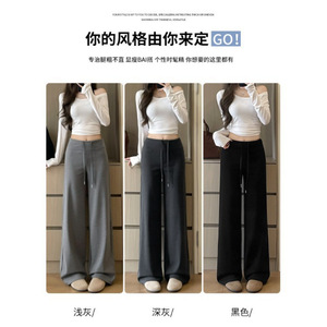 灰色运动裤女2025年新款高腰阔腿垂感显瘦春秋季直筒窄版休闲卫裤