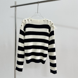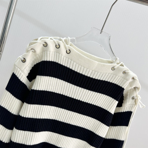 25夏季新款南油高定dio简约百搭休闲字母绳结条纹针织长袖