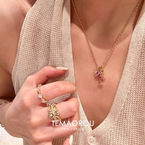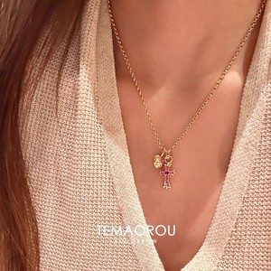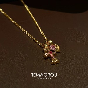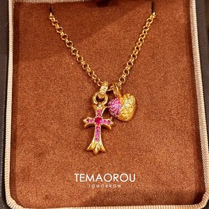 超闪!玫红细闪十字架吊坠项链复古轻奢爱心锁骨链颈链配饰