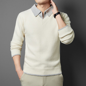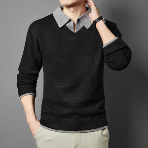 美式复古新款休闲针织毛衣百搭假两件V领男士polo氛围感老钱毛衣