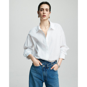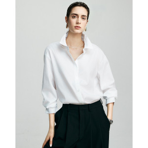 口碑推荐筋骨有型60支纯棉府绸宽松白衬衫女式衬衫上衣女