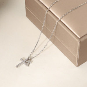 FX76-镶钻十字架项链-钢色