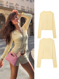 跨境外贸批发亚马逊女装秋季新款欧美风单排扣针织衫