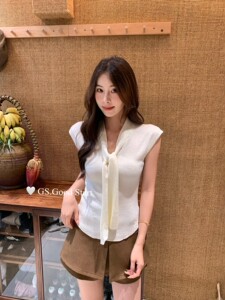 GS.GOOD START-秋装韩系高智感气质系带百搭显瘦短袖针织衫G7056