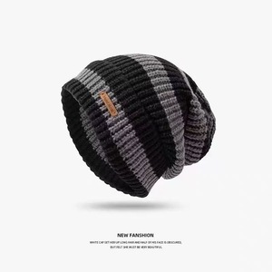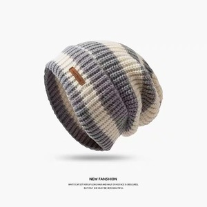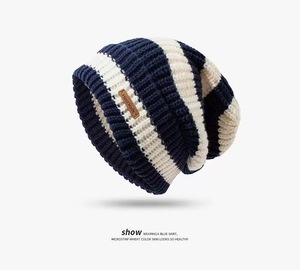 冬季帽条纹字母宽松大头围毛线帽子女秋冬天保暖百搭针织帽堆堆帽