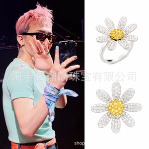 GD权志龙演唱会同款满钻雏菊向日葵戒指男女搭配百搭简约个性手饰