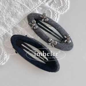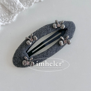 气质高级灰色蝴蝶结椭圆发夹韩系个性时尚复古刘海夹掰掰夹新款女
