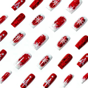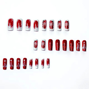 假指甲24片圣诞节穿戴美甲冬季成品指甲贴片长款美甲贴片欧美跨境