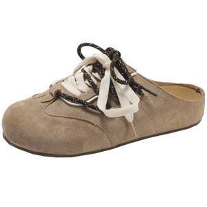 女王范复古防滑厚底包头拖鞋女外穿2025新款秋季软底半拖勃肯鞋