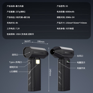 暴力风扇无刷涡轮汽车载洗车吹雪吹水灰吹尘枪万转高速涵道小充电