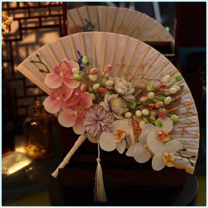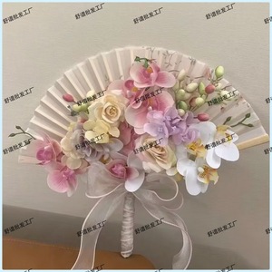 新娘折扇手捧花领证订婚晨袍秀禾搭配新中式成品扇婚庆用品折扇款