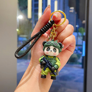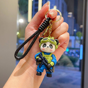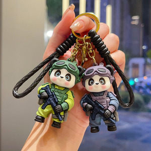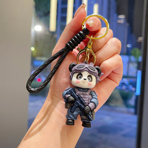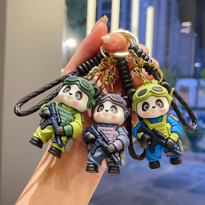 卡通特警熊猫钥匙扣创意潮酷可爱公仔情侣包包挂件小礼品厂家批发