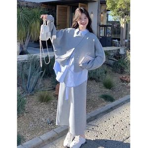 2025春季新款休闲百搭不规则设计感宽松卫衣马甲衬衫半身裙三件套