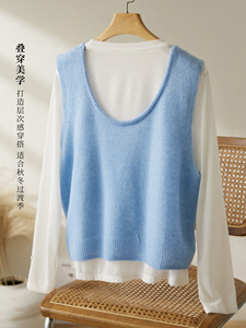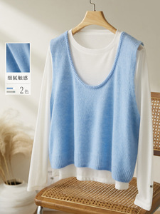 棉茧 时尚套装女2025秋冬装新款圆领无袖毛衣针织衫打底衫两件套