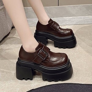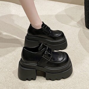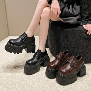 2025春秋新款增高女鞋厚底英伦小皮鞋女百搭显瘦高跟乐福鞋单鞋