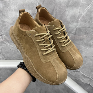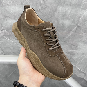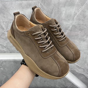 男鞋春秋头层牛皮复古休闲运动鞋橡胶底皮鞋磨砂时尚真皮软底透气