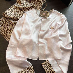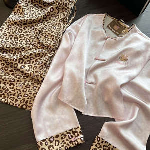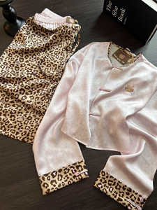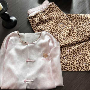 纯欲可爱豹纹凯蒂猫睡衣女秋季薄款大码冰丝长袖长裤家居服套装
