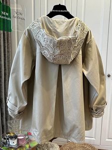 欧货蕾丝连帽风衣外套女2025年秋装新款宽松显瘦休闲中长款大衣潮