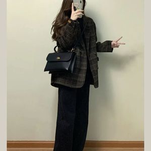 复古小香风格子西装呢子外套2025秋冬新款韩系加厚显瘦百搭毛呢