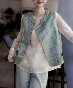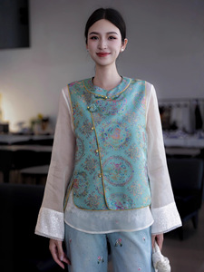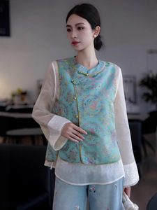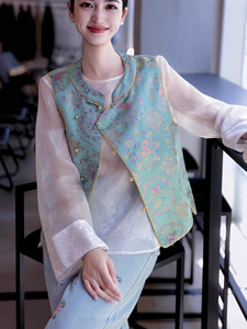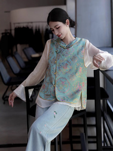 新中式系列原创大爆款桑蚕丝古蜀锦马甲秋季国风减龄气质盘扣上衣