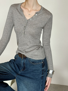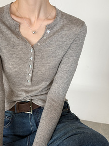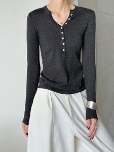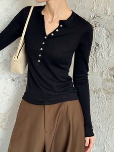 橘芷早秋新款V领极简修身毛衣小衫 大爆版锁骨针织上衣802