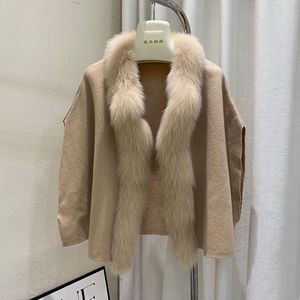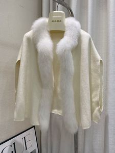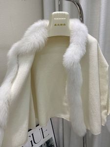 2025秋冬新款狐狸毛领小斗篷毛衣针织开衫外套小个子短款围巾披肩